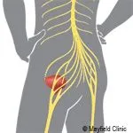 Sciatica is a term used to describe leg pain that radiates from your back into your buttock, and down the back of your leg. It is a general term used to describe symptoms rather than an actual physical condition. Typically the pain is caused by pressure on the nerve roots in your lower back. Doctors often call it lumbar radiculopathy, meaning that the pain begins in the spinal nerve roots and "radiates" to your leg. Depending on the cause, acute sciatica typically resolves with rest, exercise, and other self-care measures. Some people suffer from chronic pain that continues despite treatment.