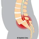 Cauda equina syndrome is a rare condition most often caused by a large disc herniation in the lower back that compresses the nerve roots at the end of the spinal cord. Sudden back pain with numbness in the genital area, difficulty urinating, and weakness in the legs is a medical emergency. Prompt surgery to relieve the pressure may prevent permanent damage and restore bladder and bowel function.